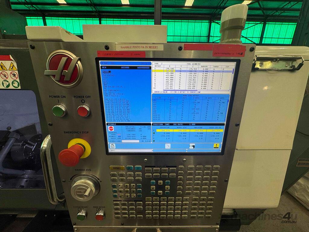 The HAAS ST-25Y CNC turning center is known for its Y-axis and live tooling capabilities, enabling complex, off-center milling, drilling, and tapping operations.