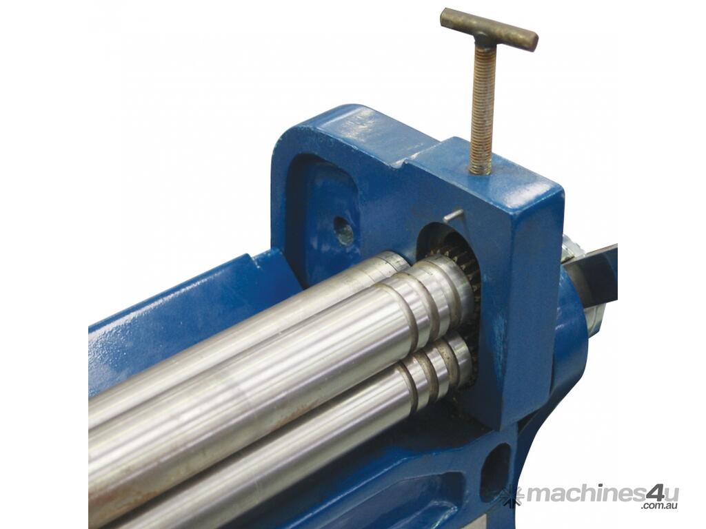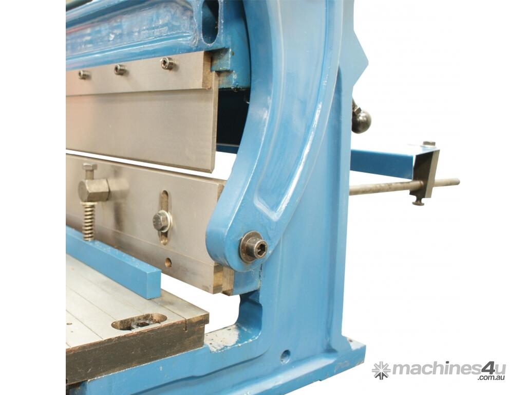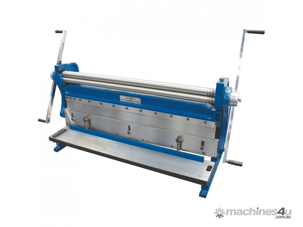 A compact three-function sheet metal working machine which will shear, roll and bend thin sheet material up to a maximum width of 1000mm.