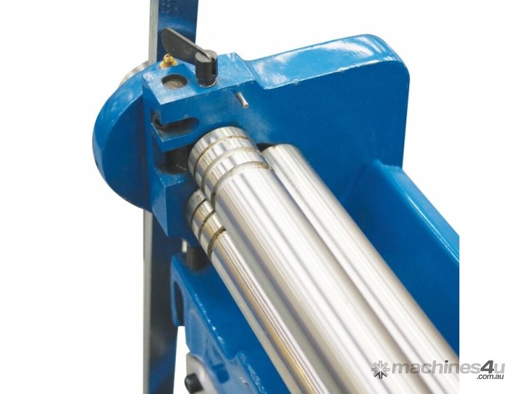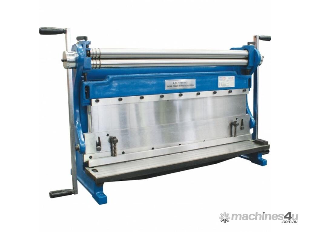 A compact three-function sheet metal working machine which will shear, roll and bend thin sheet material up to a maximum width of 760mm.