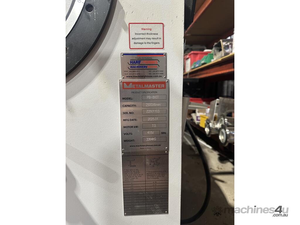 Hadco PB-860T Panbrake 2500x6mm capacity. Near new barely used, 3 phase power.