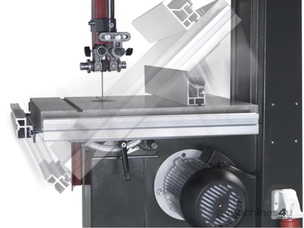 Standard equipment such as bandsaw blade guides above and below the table, bandsaw blade tension indicator, tiltable machine table and much more does not have to be expensive! The precision-ground solid cast iron machine table can be tilted from -5 to +45 for optimum flexibility and, together with the reinforced, low-vibration machine base-frame, ensures maximum stability.