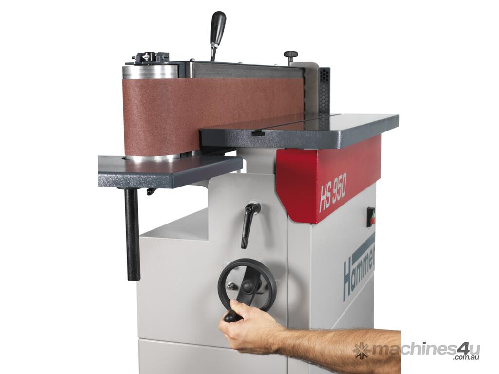The Hammer HS 950 is the perfect entry-level machine for demanding edge sanding. The connectible sanding belt oscillation makes perfect use of the entire sanding belt surface. Together with the height-adjustable cast iron sanding table, the HS 950 achieves maximum sanding belt life. Guaranteed flexibility: The sanding unit can be tilted continuously to 90° and the open design allows easy sanding of long workpieces.