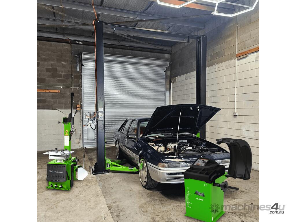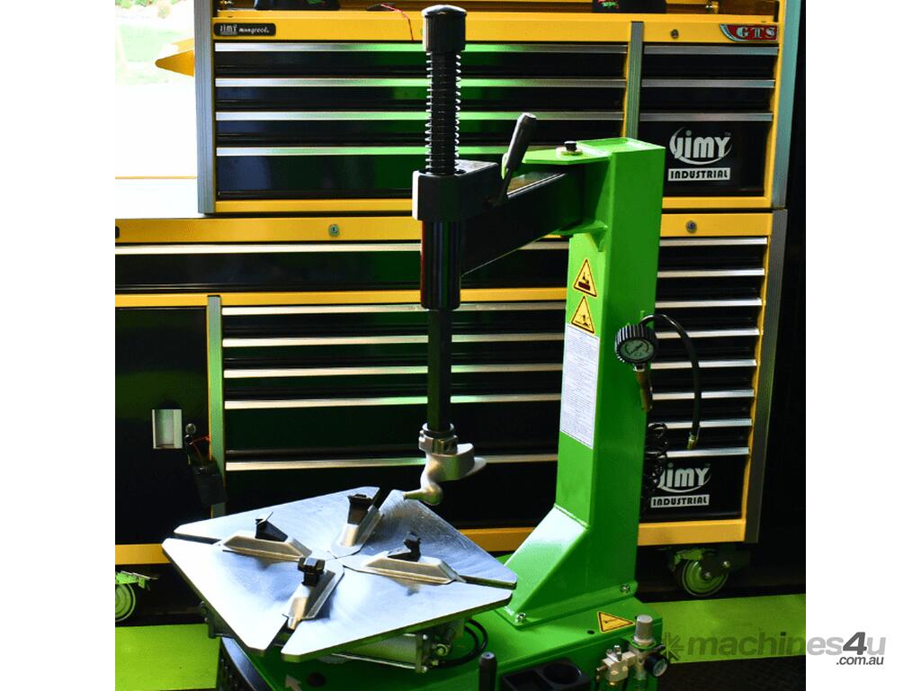 Car Tyre Changer up to a 24” wheel with semi-automatic side swing arm.