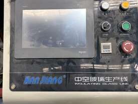 Glass IGU line, include butyl extruder, desiccant automatic filling machine and automatic spacer bending machine, has been in operation onsite in glass factory for 5 years. Argon filling capable and setup for use.