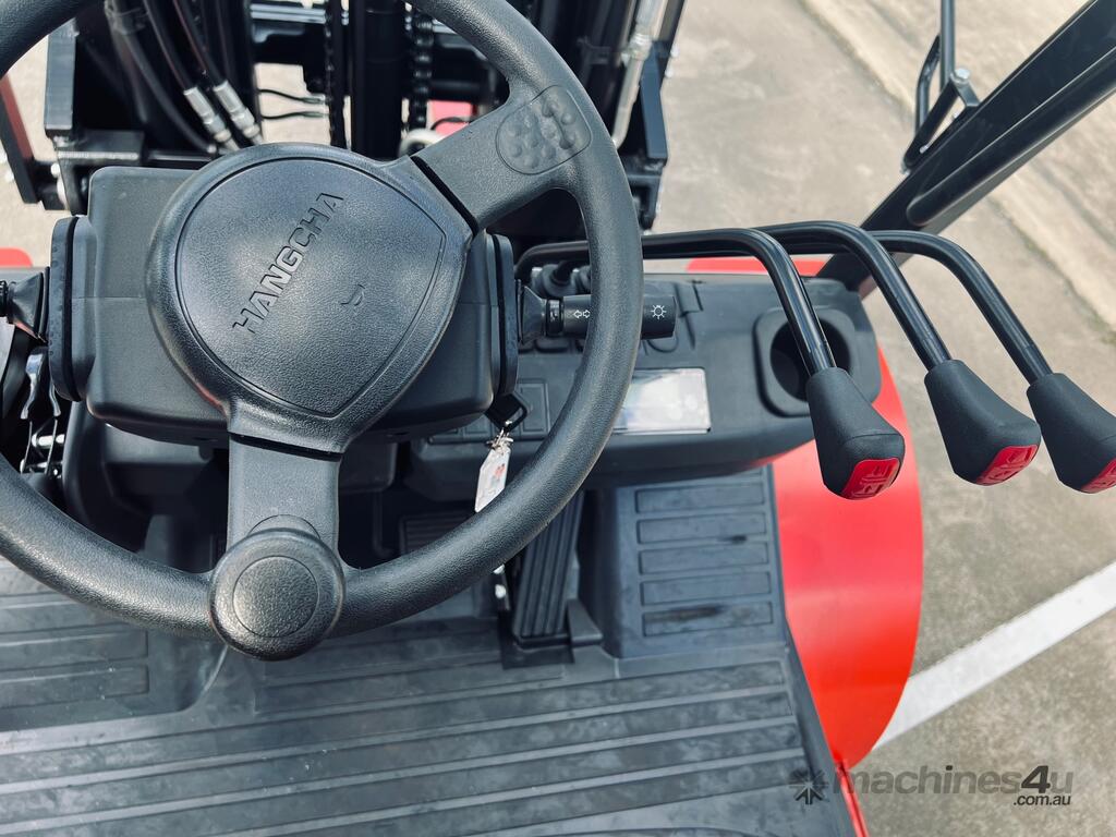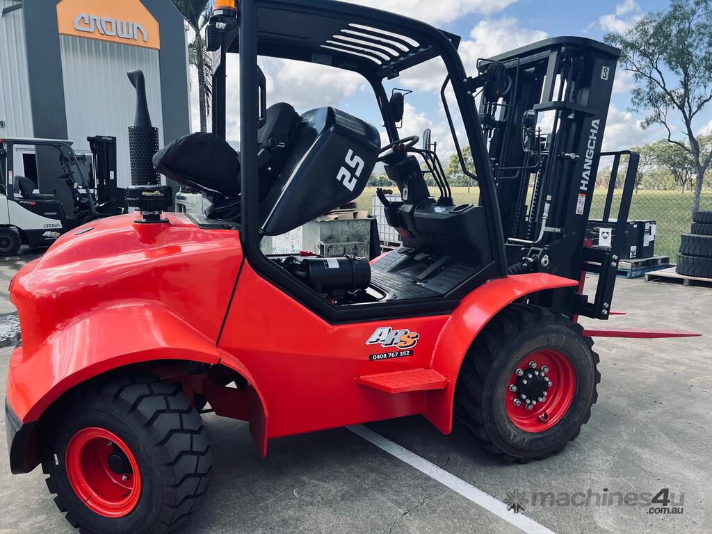 The Hangcha CPCD25 Rough Terrain Forklift delivers exceptional performance and features a 2500kg lifting capacity and a 4300mm triplex mast, ensuring superior reach and stability. Equipped with sideshift functionality for precise load placement, it also includes a full-floating hydraulic 2-speed transmission for seamless operation across varied terrains. The oscillating steer axle with load-sensing steer hydraulics enhances maneuverability and control, while the Yanmar Diesel Engine TEN98 delivers reliable power and efficiency. The brake system ensures enhanced safety and durability, and the full LED lighting kit provides excellent visibility both front and rear.