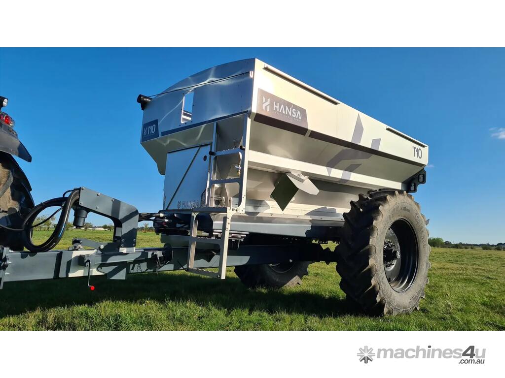 The T10 is a mid sized single axle trailed machine offered by Hansa. The 11,000L bin is made from from 304