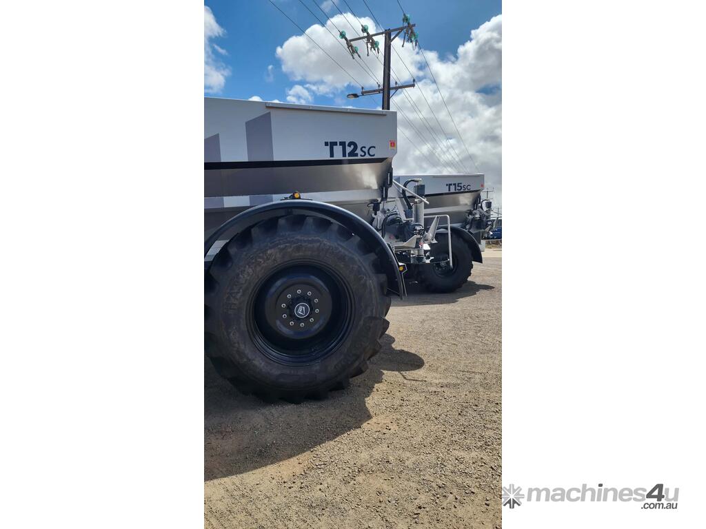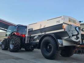 through to heavy rates of Lime and Manure. The proprietary T12 chassis features a fixed axle with hydraulic drawbar