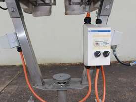Heat Shrink Tunnel, "Leister", 4 guns, on a stainless steel frame with removable insulation cover