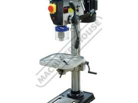 Mostly constructed from cast iron and machined steel to provide superior stability and strength. Powered by a 0.75kW, 1hp, 240-volt induction motor and coupled to a 12-belt speed pulley system offering wide range of speeds between 280-2380rpm. The down feed handle is also made from cast iron in one solid piece design and fitted with soft hand grips for your comfort & convenient drilling depth feed control.