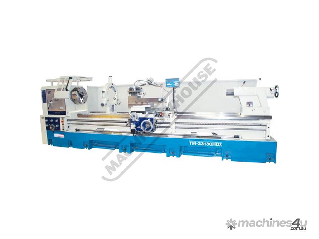 The TM-33130HDX Industrial quality centre lathe is manufactured in Taiwan to a stringent precision engineering high tolerance & superior excellence to cope with the big & heavy jobs. This lathe has a 158mm big bore, 860mm turning capacity with 1000mm in the gap, a massive 510mm wide 3V induction hardened & ground bed-way to cope with all the heavy workloads.