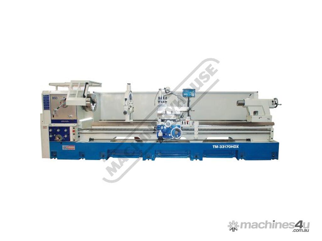 The TM-33170HDX Industrial quality centre lathe is manufactured in Taiwan to a stringent precision engineering high tolerance & superior excellence to cope with the big & heavy jobs. This lathe has a 158mm big bore, 860mm turning capacity with 1000mm in the gap, a massive 510mm wide 3V induction hardened & ground bed-way to cope with all the heavy workloads.