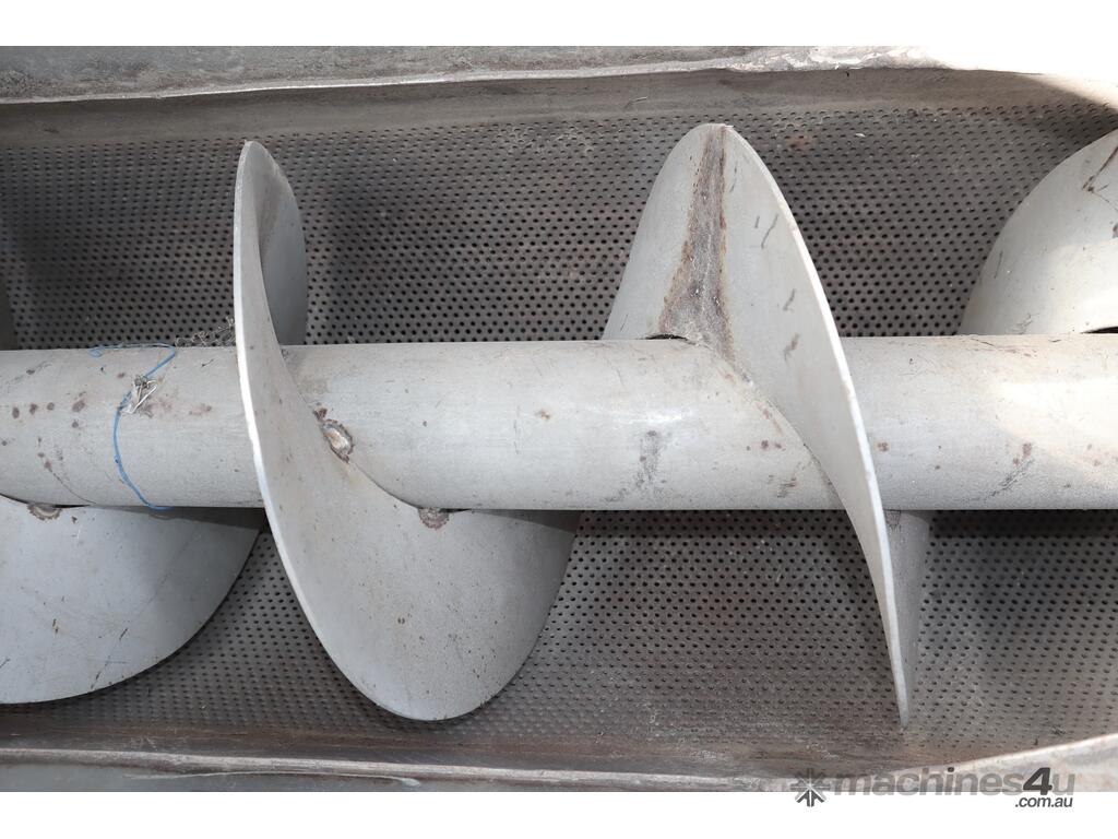 "This heavy-duty dewatering auger screw conveyor may be ideal for industries requiring liquid-solid separation, such as wastewater treatment, food processing, and agriculture. It may be used to transport and dewater materials, such as sludge, wet grains, or similar items. The machine may benefit businesses looking to enhance efficiency in material handling while removing excess liquid from solid materials. The screw conveyor works by propelling materials through the perforated screen, allowing liquid to drain as the material moves along the auger."