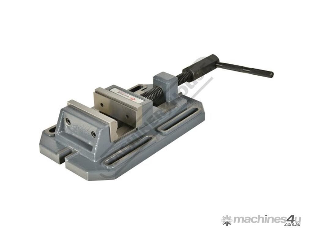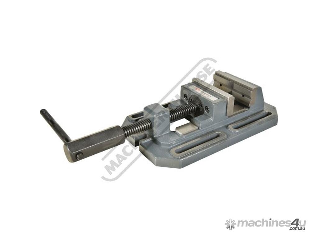 Heavy duty drill vice designed specifically for machine shop or tool room use. The bottom of the base is machined and slots are provided for securing to worktable.