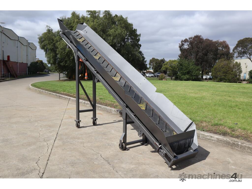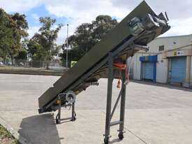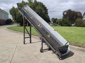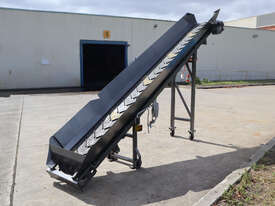 Heavy duty inclined conveyor designed for reliable product elevation in continuous industrial environments. Fitted with a chevron cleated belt to ensure positive grip and controlled transfer, even with bulk or irregular materials etc. Built for robust throughput where stability and consistent feed are essential. Ideal for feeding hoppers, transferring product to higher levels, and integrating into automated lines.