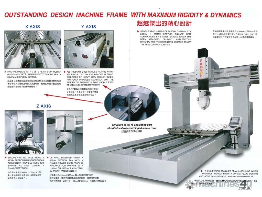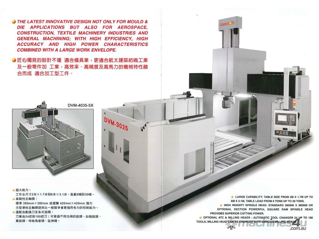 CNC MACHINERY SALES AUSTRALIA PRESENTS - Table sizes 2M x 1.7M up to 6M x 3.1M the Eumach DVM ram type double column vertical machining centres are designed for heavy duty applications where rigidity and accuracy are essential.