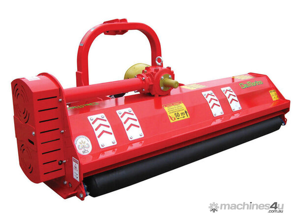 Heavy duty and flexible Levante flail mowers are suitable for larger tractors (80hp to 120hp) and have many unique features. With a strong Italian gearbox and a cutting height of 2-12cm, overgrown grass and undergrowth can be converted from a potential fire hazard into a nuturing mulch, especially with the internally mounted, dual mulching (shredding) blade welded to the frame in the mulching chamber. The frame is reinforced with square steel tubing on the leading and rear edges and a rubber flap is on the front to contain any objects thrown by the flails. SOTA Tractors is the sole distributor of Del Morino implements in Australia.