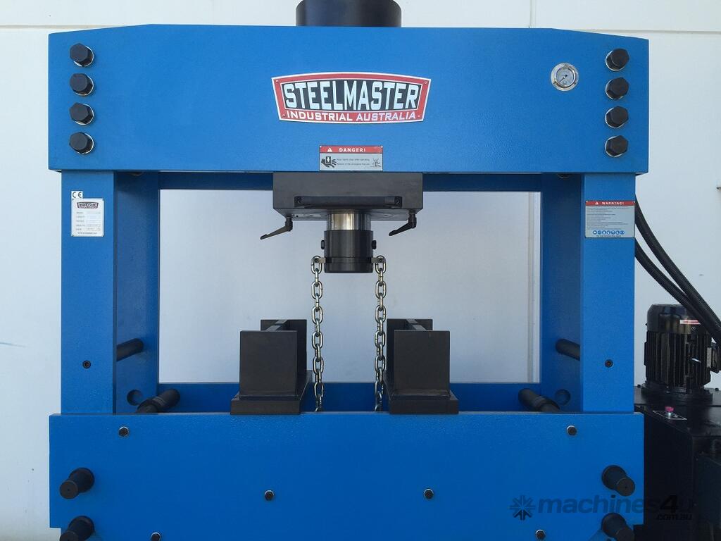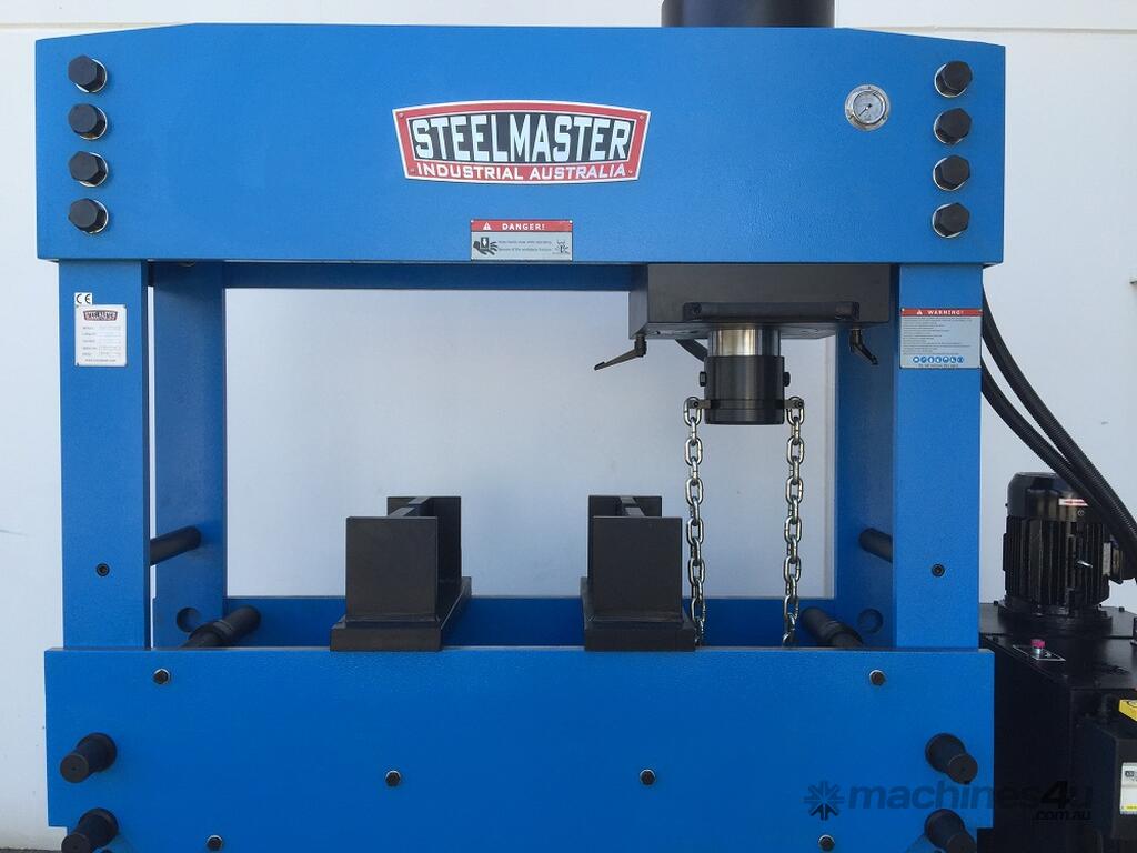 STEELMASTER INDUSTRIAL SM-HEPM110 Hydraulic Workshop Press. 100Ton Capacity, Fixed & Sliding Head. 2 Speed Hydraulic Control With Manual Mode, Auto Return, Pressure Gauge, Lifting Chains. V