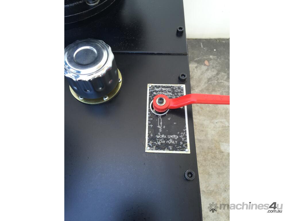 Quick lock power assist table raise and lowering of the bed, which can be adjusted multiple locations along its massive steel frame.
