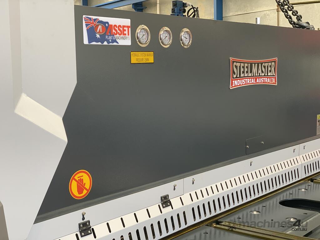 STEELMASTER-ADH-MS8-3208. Guillotine Variable Rake 3200mm x 8mm Capacity, P40T CNC Touch Screen Controller CNC Blade Gap, Angle & 1000mm Ballscrew Backgauge Positioning – Industrial Series. V