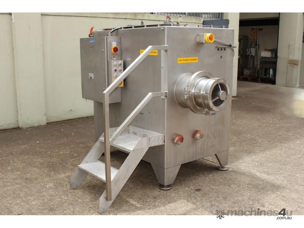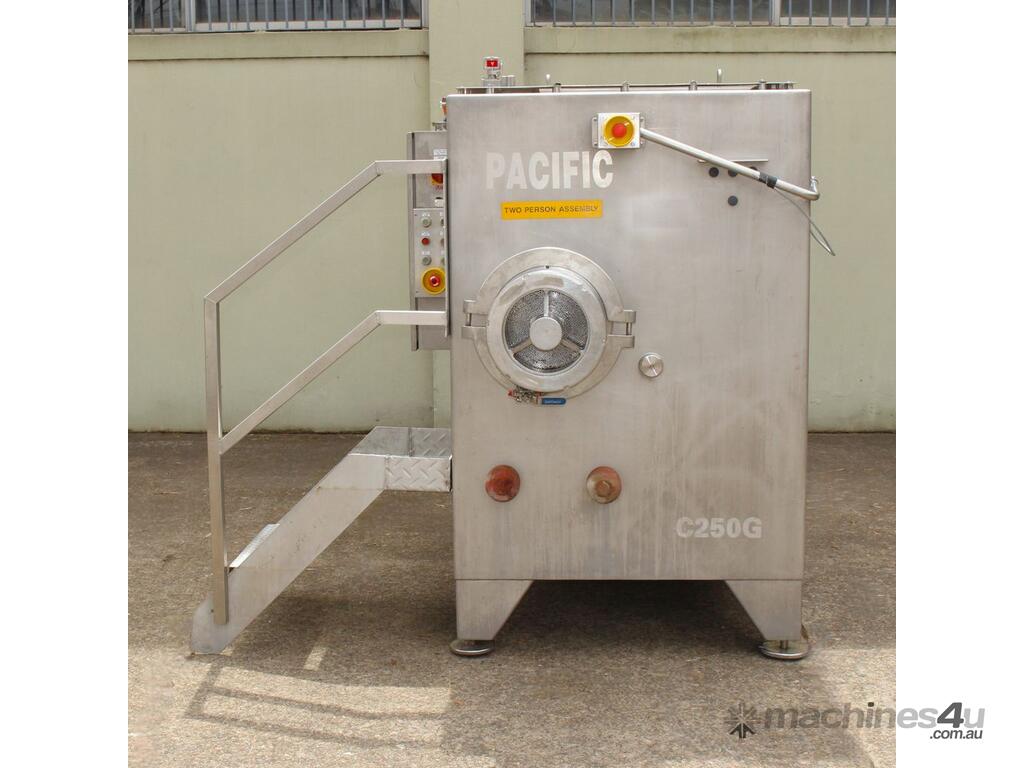 Heavy Duty Industrial Mincer, "Pacific" Model C250G, driven by 3 phase 37kw 1475rpm motor, complete stainless steel body, with working platform, overall dimensions: 1800mm x 1900mm x 1800mm