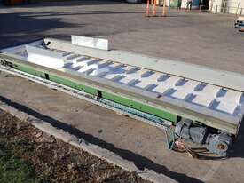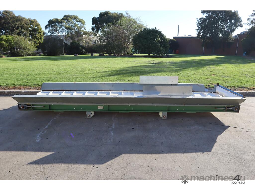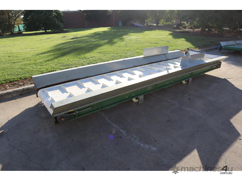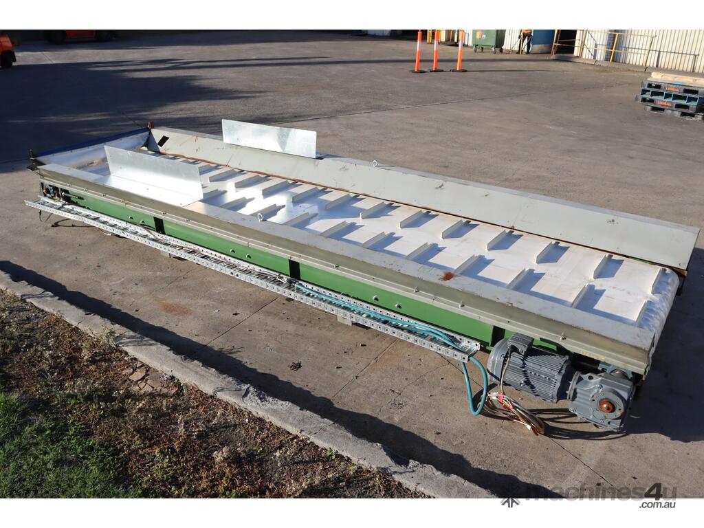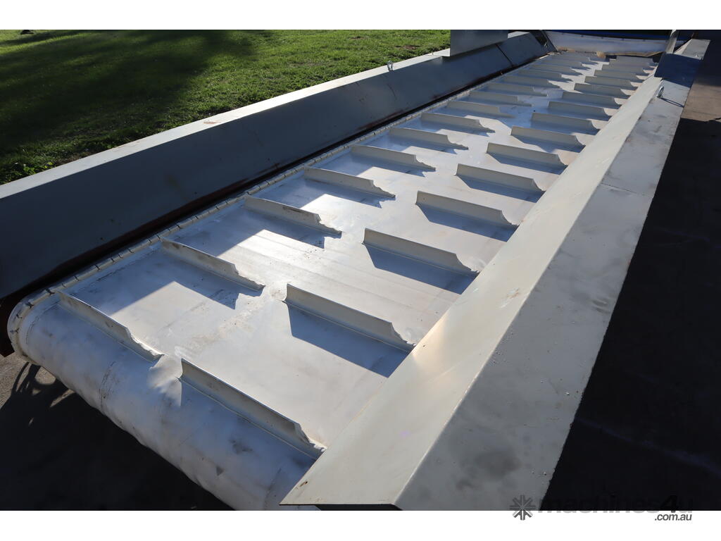 Designed to be an incline conveyor with a cleated belt. It was previously used with a shredder which was shredding foam.