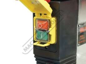 The magnetic safety switch with emergency stop is conveniently front mounted for quick access. The drill also includes an adjustable safety drill chuck guard and the belt cover is equipped with a safety switch to ensure safe belt speed changing.
