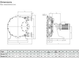 Bredel 40 peristaltic hose pump, built in the Netherlands in 2021. Designed to pump viscous and abrasive slurries, pastes and sludge, with up to 80% solids in suspension. This model offers gentle, contamination-free pumping with a simple, low-maintenance design and easy hose replacement. Suitable for continuous or intermittent duty across a wide range of industrial environments.
