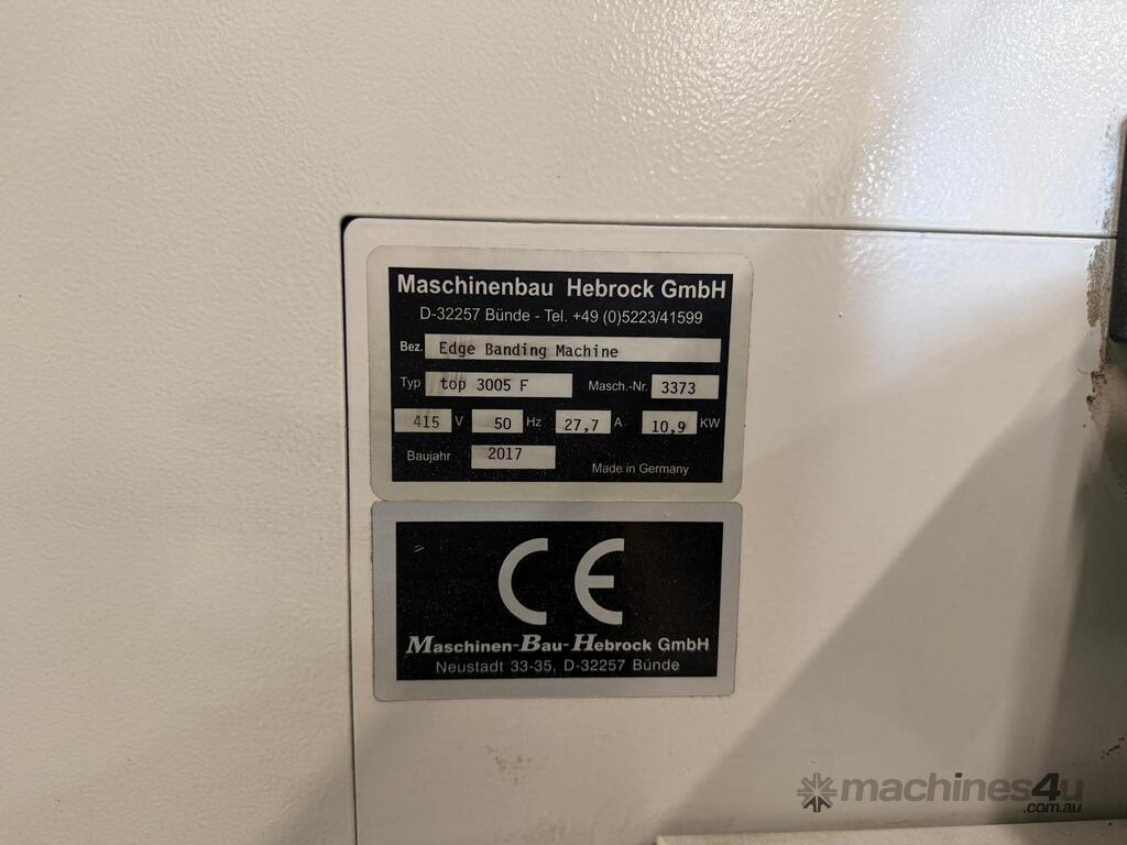 For sale is a 2017 Hebrock TOP 3005F edge banding machine, well-maintained and in very good working condition. This is a single-owner machine and has been used in a professional production environment.