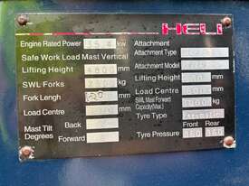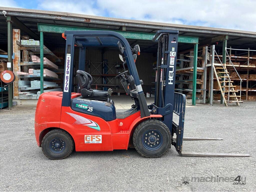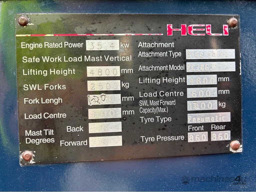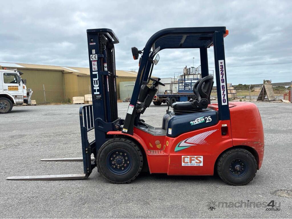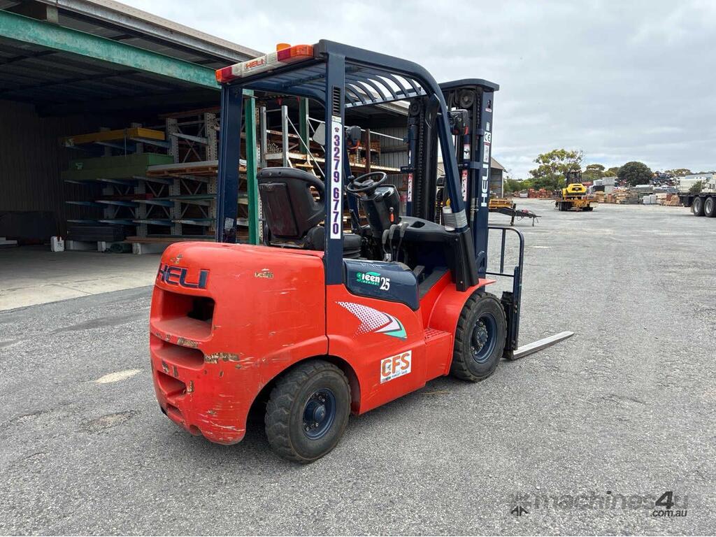 No C/P,Heli,CPCD25,Forklift,Engine #: 7CY7290,4 Cyl,Diesel,Injected,Odometer not visible,5479 (Hrs. Showing on Hour meter),Colour: Red,Unregistered,Serial No: 01025C4640,ROPS No: undefined,Sold with No Plates