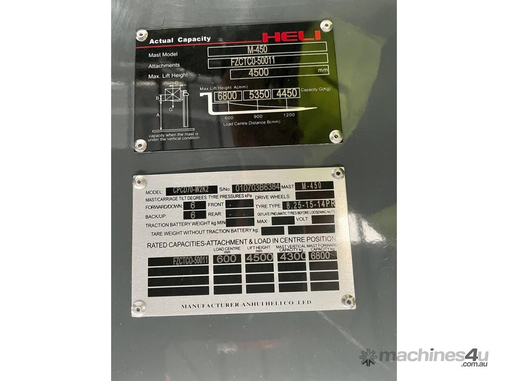 Brand New 7T Heli K2 Diesel Forklift Dual Wheel Wide Carriage Container Handler Specification