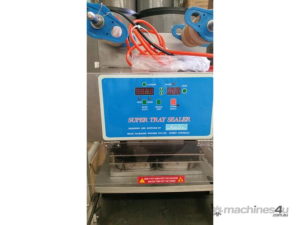 The HELIX Super Tray Sealer FTHX200 is a high-performance, used tray sealing machine designed to meet the demands of fast-paced packaging operations. Offering exceptional speed and reliability, it is ideal for sealing a variety of trays without the need for vacuum or gas flush. This efficient machine will streamline your tray sealing process with ease.