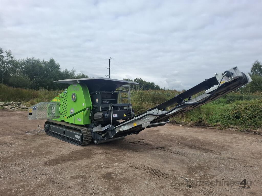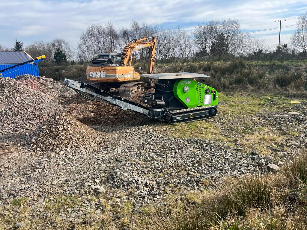 2.5 meter tall stockpile discharge conveyor and overband magnet for steel removal from final product