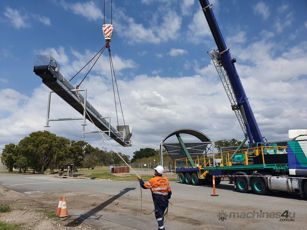This was only used for a trial project, not a lot of use, also needs to have new wiring from motor to switch board, you will need to add legs to suit what end use will be, in regards to elevation (height requirements). Flat rubber Conveyor belt will need to be re-spliced.