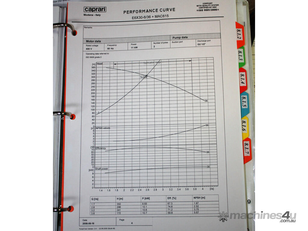 Very seroius pumps peak efficency at 300 m head and 2.8 L/s, please refer pump curves in photograph 2. Useable range extends to 350m head, so massive lifting capacity