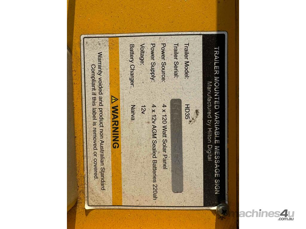 2016 Hilton HD-35 Trailer Mounted Solar Powered Variable Speed Limit Sign C/w 1150mm x 1150mm Color LED Sign, Stabilisers, Removable Draw Bar, Jockey Wheel, 50mm Tow Hitch ATM: 850 Kg.