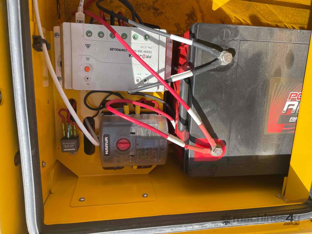 Hilton HD-35 Trailer Mounted Solar Powered Variable Speed Limit, Batteries and Control. 50 mm coupling. Tyres 185R14, 5 stud rims .