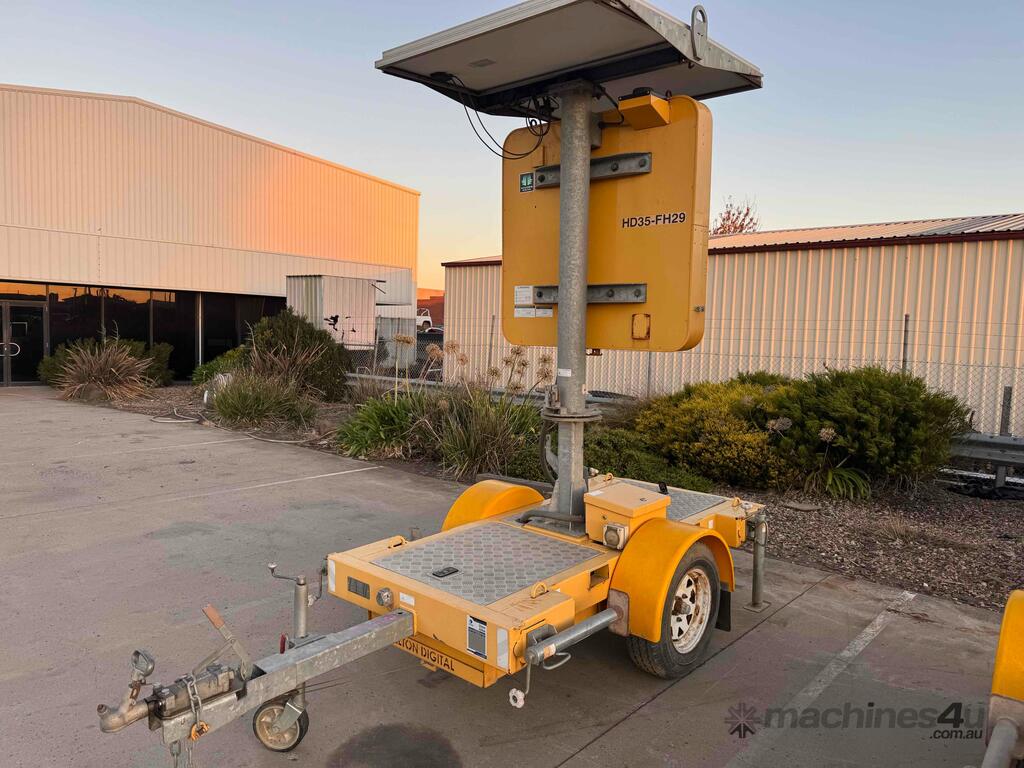 Hilton HD-35 Trailer Mounted Solar Powered Variable Speed Limit, Batteries and Control. 50 mm coupling. Tyres 185R14, 5 stud rims , ATM 850KG