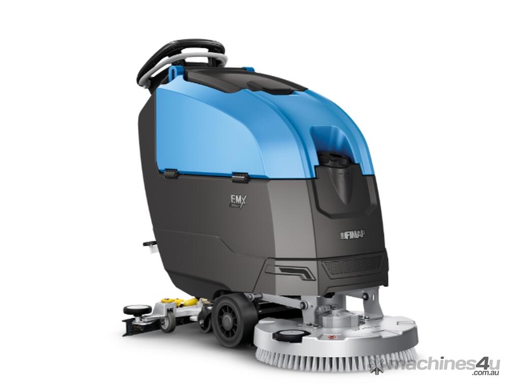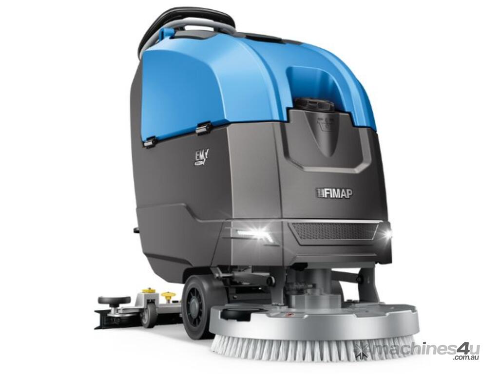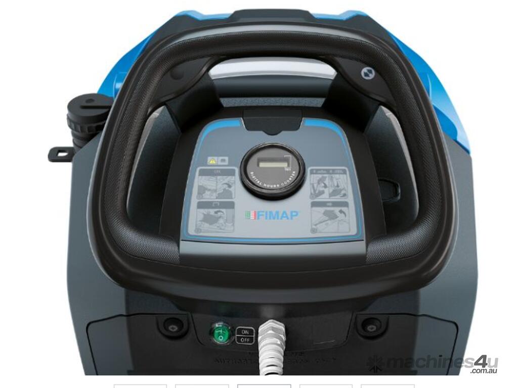 Fimap EMX Hepa 24V floor scrubbing machine complete with batteries, on-board charger, scrub brush.