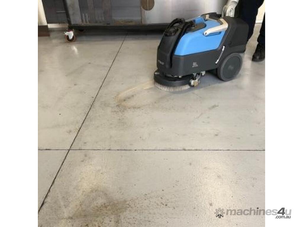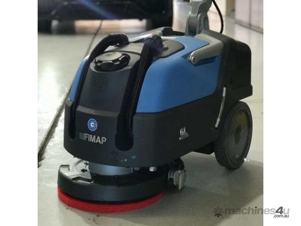Fimap GL Pro Walk-Behind Scrubber Dryer complete with 24 V batteries, on-board charger and scrub brush.