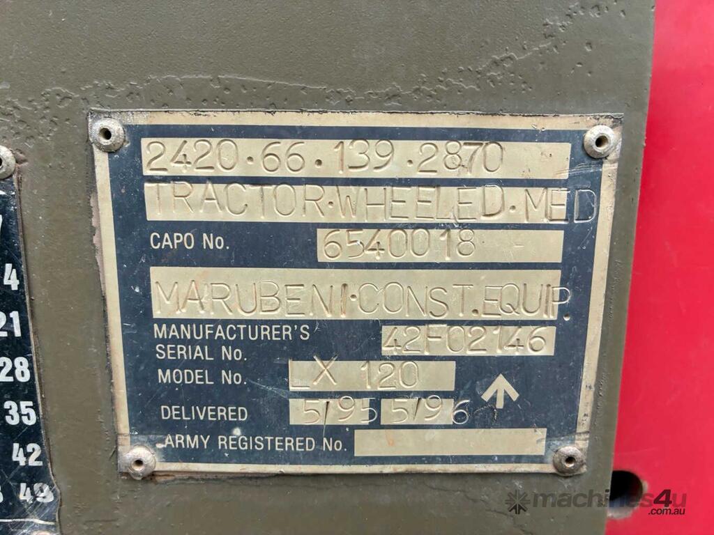 No C/P,Hitachi,LX120,Loader,6 Cyl,Diesel,Odometer not visible,74 (Hrs. Showing on Hour meter),Colour: Camouflage,Rego. No: 201638,Serial No: 42F02146,Sold with No Plates,Key No: 390