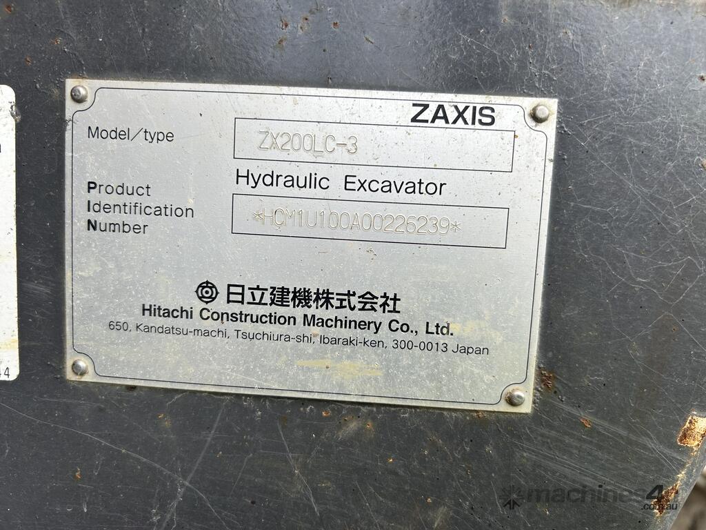 No C/P,Hitachi,ZX200LC-3,Excavator,4 Cyl,Odometer not visible,5155 (Hrs. Showing on Hour meter),Colour: Orange,Unregistered,VIN: HCM1U100A00226239,ROPS No: null,Sold with No Plates