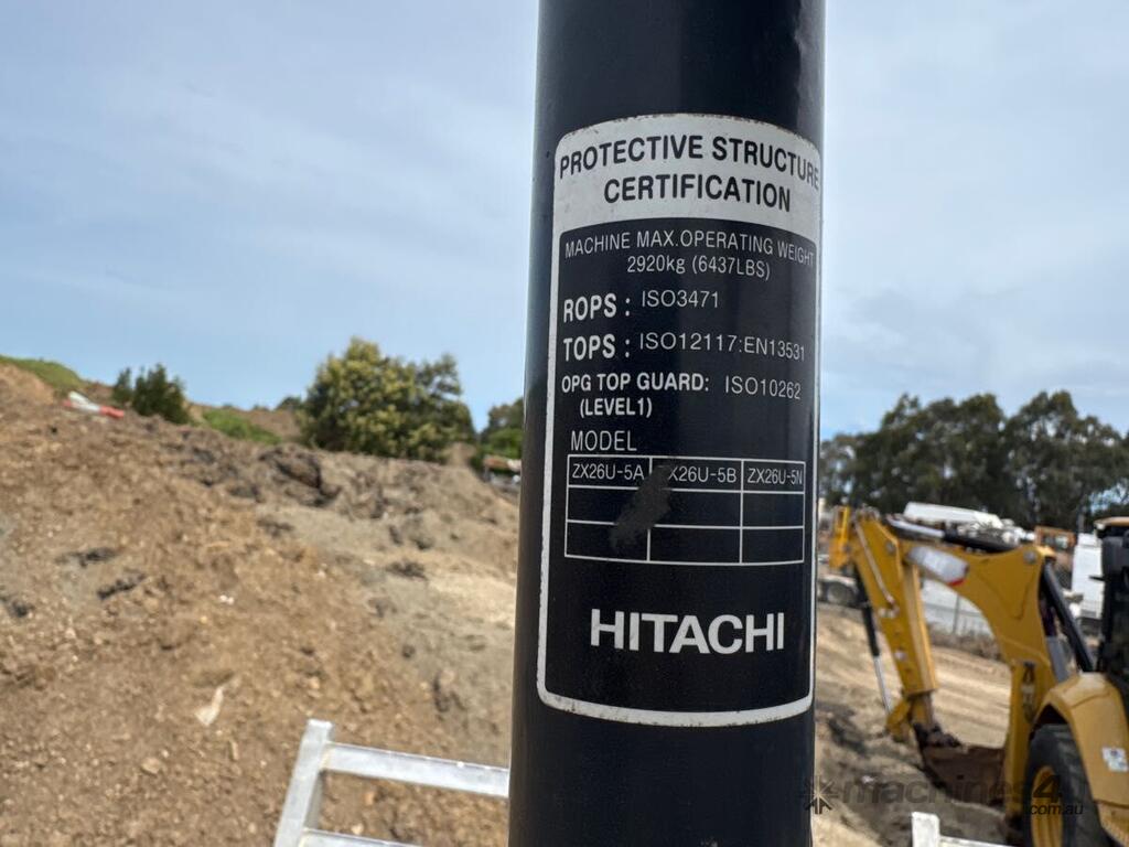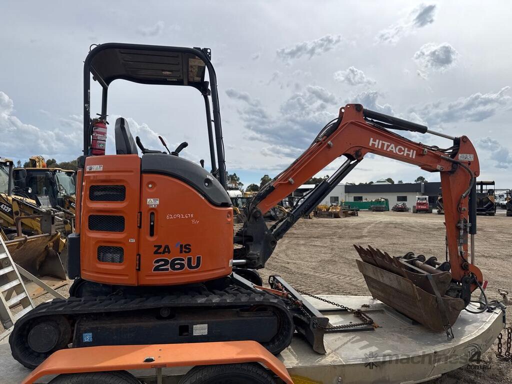 No C/P,Hitachi,ZX26U-5A,Excavator,3 Cyl,Diesel,Odometer not visible,2352 (Hrs. Showing on Hour meter),Unregistered,Serial No: HCMACC90J00034445,ROPS No: undefined,Sold with No Plates