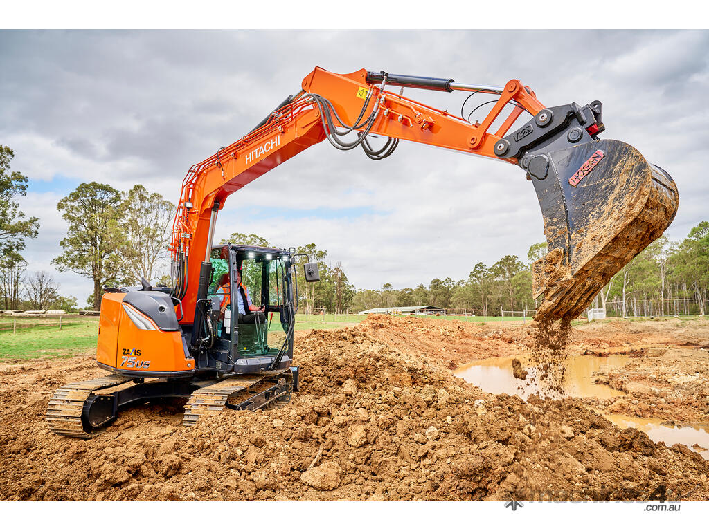 The Hitachi ZX75US-7, featuring reduced tail swing, is ideal for tight spaces such as residential or congested areas, providing the power, smoothness, and ease of operation synonymous with larger Hitachi excavators in a compact design.