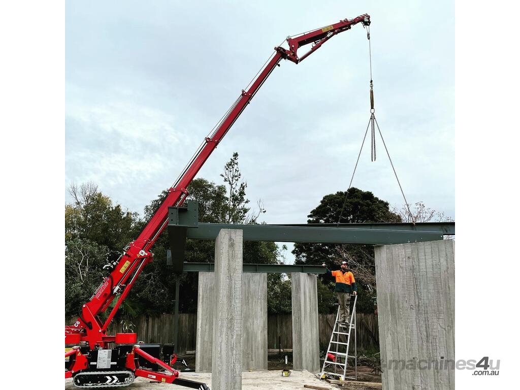 It’s a best seller in the mini crane category. This crane is ideal for placing glass and accurately positioning steel beams. It is the only compact crane which can lift more than its own weight. This makes it possible for one crane to lower another into an underground space.