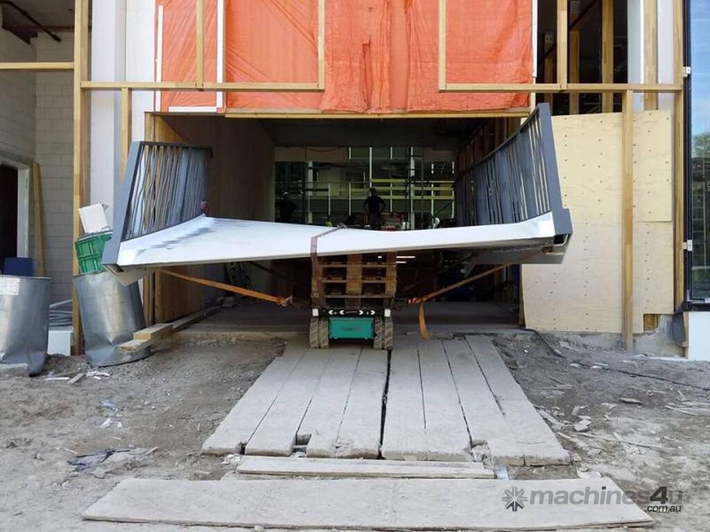 The carrier is compact and just 80cm wide, and material can be placed on it length or widthwise. The radio remote controlled carrier is perfect for transporting material, such as steel beams, through small access doors and less easily accessible areas.