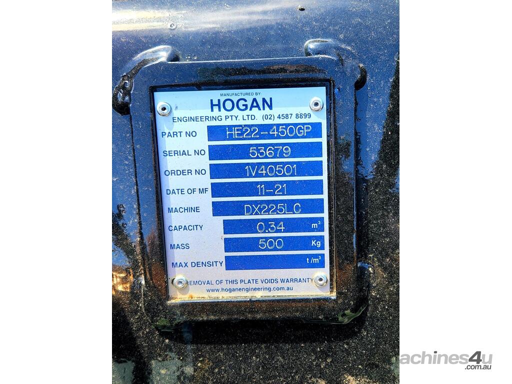 For sale brand new Hogan Engineering GP rock buckets to suit 20T-25T excavator will sell separately or as a set these buckets have never seen rock/dirt specified to suit a Doosan DX225LC.