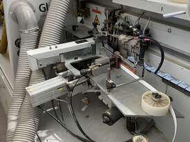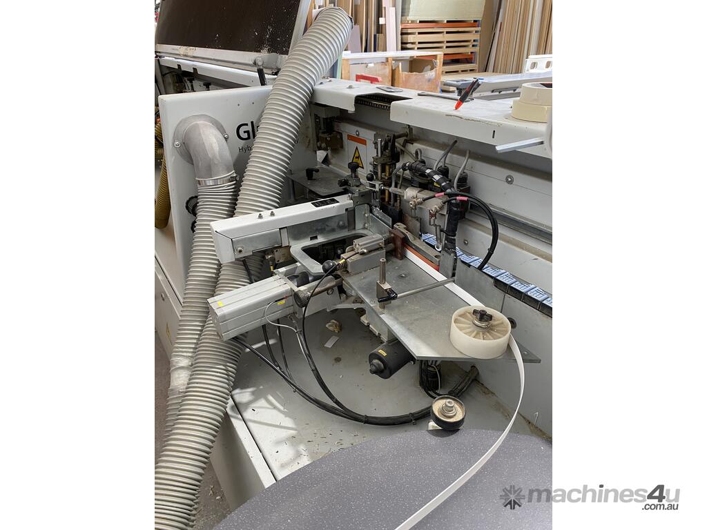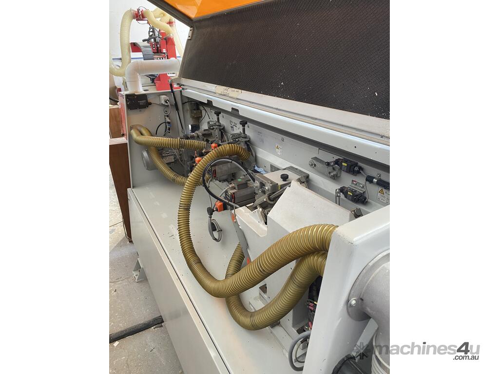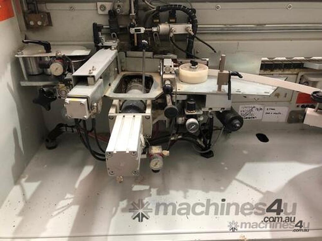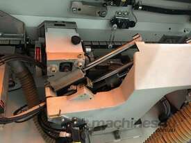 End trimming unit 1918 (60mm), twin saw, pneumatic adjustment for chamfer-type end trimming. Multifunctional trimming unit, FR201, for flush trimming, radius and chamfering.