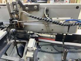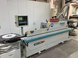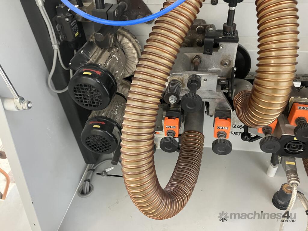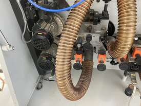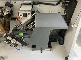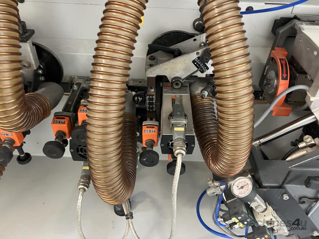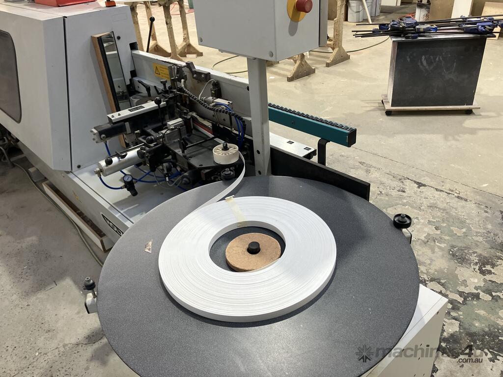 Includes an automatic glue cartridge system, multiple trim stations and a buffing unit for edge finishing.