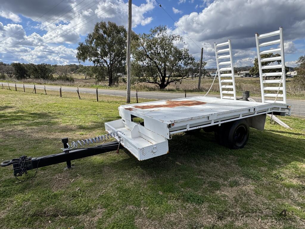 1986 Homemade Steel Single Axle Beavertail Tag Trailer with Ramps