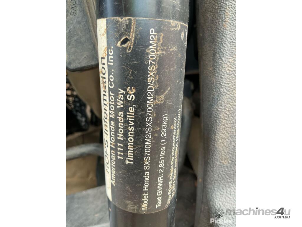 No C/P,Honda,Pioneer 700,ATV,Petrol,5629 (Mls. Showing on Odometer),703 (Hrs. Showing on Hour meter),Colour: Red,Unregistered,Serial No: 1HFVE02UXP4850024,ROPS No: undefined,Sold with No Plates,WOVR Status: WOVR N/A